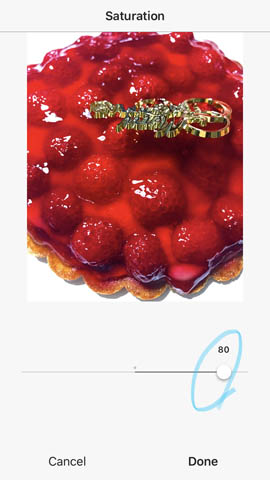 I just increase SATURATION up to 80. You can present the sweets looks yummy!