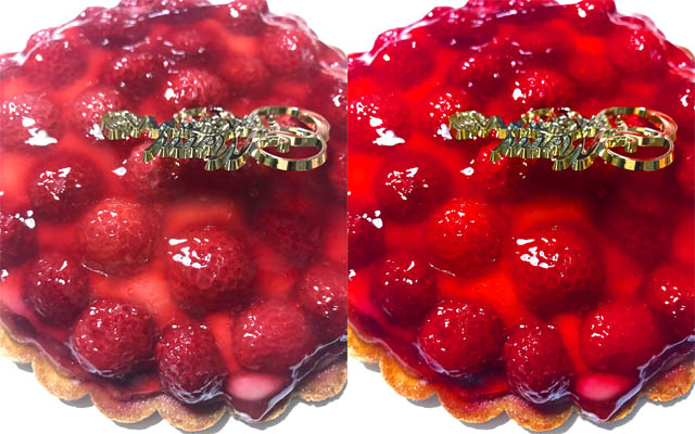 Usually, the color is dull than you expected. Just increase color. This is strawberry tart. I took in my house
